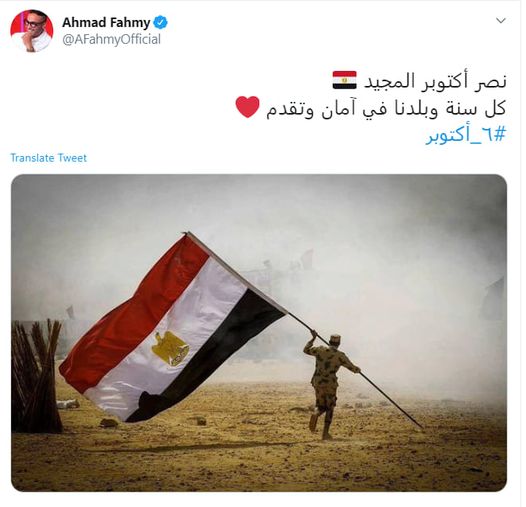 قام النجم أحمد فهمى بالأحتفال بالذكرى الـ47 لنصر أكتوبر المجيدة والتى تتزامن مع اليوم الثلاثاء 6 أكتوبر، حيث كتب على حسابه بموقع "تويتر": "نصر أكتوبر المجيد؛ كل سنة وبلدنا في آمان وتقدم" مع صورة علم مصر.