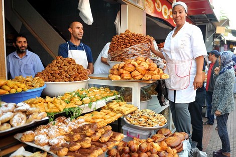 أما محلات المواد الغذائية فهي تعرف إقبالا كبيرا على الفواكه الجافة، وخاصة منها التمور، اما محلات صنع الحلويات الخاصة برمضان، لإعداد وبيع والفطائر للمائدة المغربية هناك ما تسمى المخرقة أو الشباكية والحلويات المعسلة مثل: البريوات والمقروط.