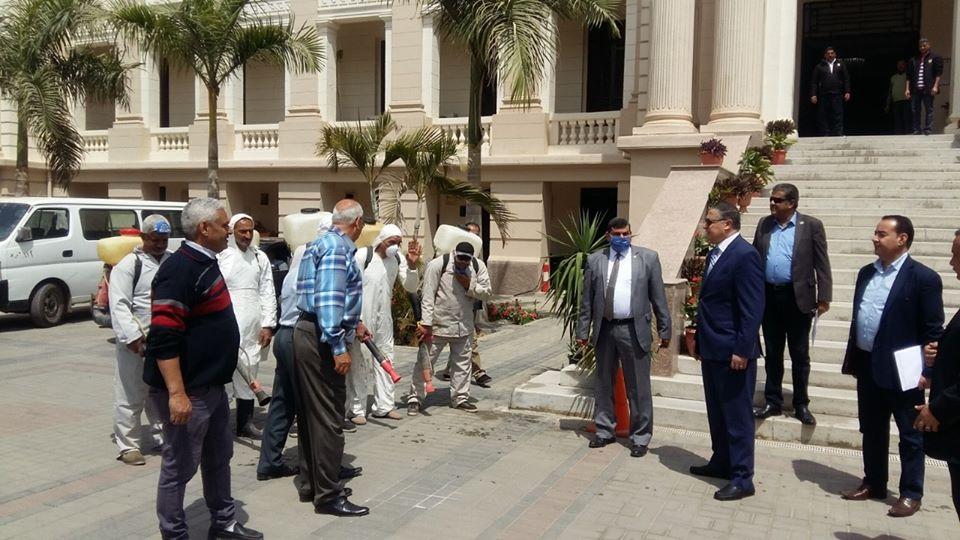 تابع الدكتور جمال السعيد رئيس جامعة بنها أعمال التعقيم والتطهير التى تجرى للمرافق والمنشآت داخل مبنى إدارة الجامعة بحضور رفعت نان الأمين