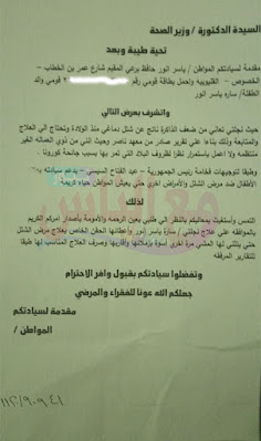 حيث قام العامل "ياسر انور حافظ برعى" بمطعم فول وفلافل بشارع ترعة التوفيقية بمنطقة الخصوص، ومحل سكنه بشارع عمر بن الخطاب بنفس منطقة العمل، بالتوجه إلى "مع الناس نيوز" وقدم شكوى بسبب تضرره من تجاهل وتعنت المسئولين بمعهد ناصر وتحويل طفلته الصغيرة "سارة ياسر" والبالغة من العمر 15 عاما، والتى تعانى من ضعف الذاكرة والناتج عن شلل دماغى منذ ولادتها، والذى امر بتحويل الطفلة إلى مستشفى بنها، والتى رفضت إعطائها الحقن الخاص بعلاج مرضى الشلل حتى يتثنى لها المشى مرة أخرى.