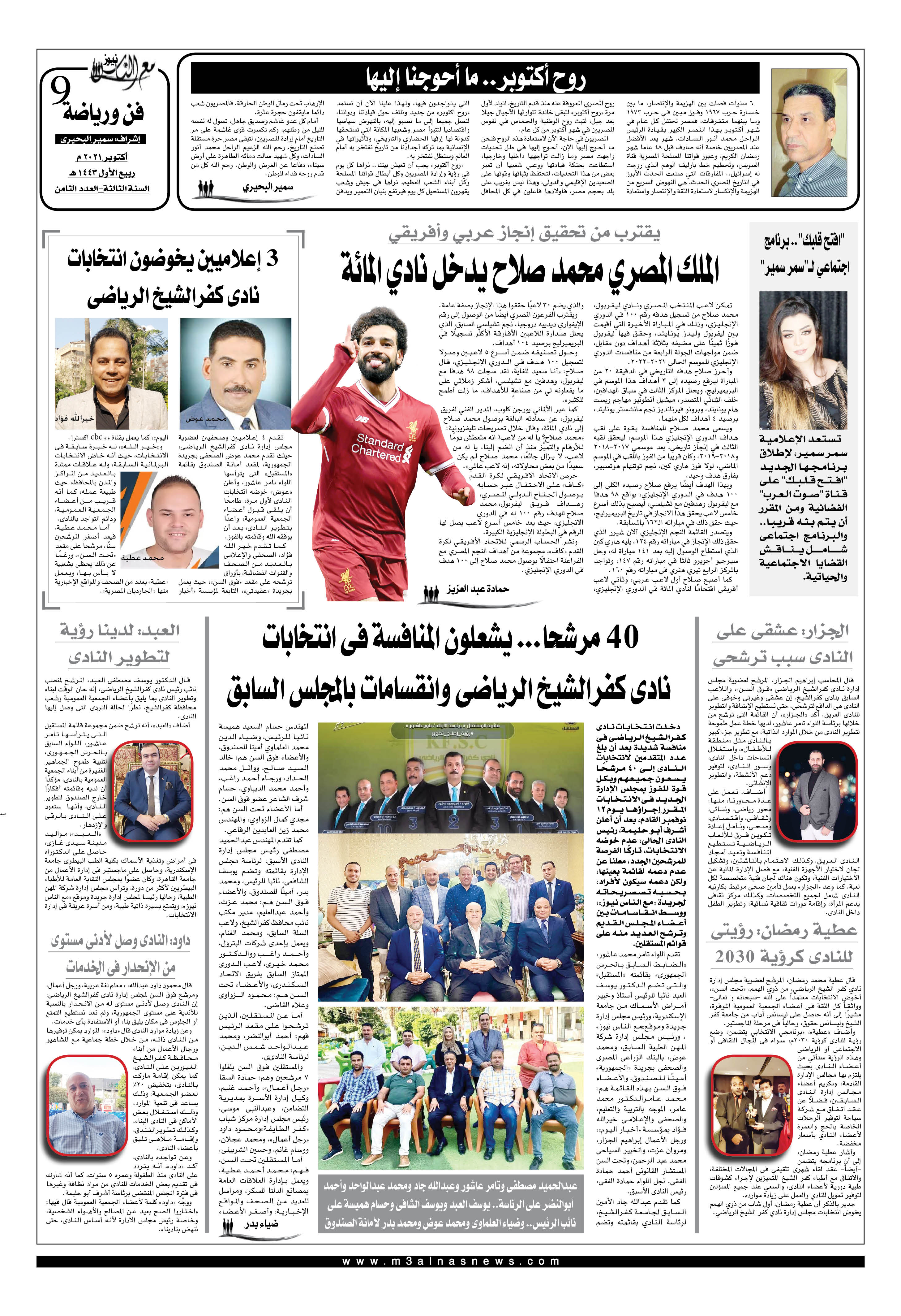 تقدم 3 إعلاميين وصحفيين لعضوية مجلس إدارة نادى كفرالشيخ الرياضى، حيثث تقدم محمد عوض الصحفى بجريدة الجمهورية، لمقعد أمانة الصندوق بقائمة "المستقبل" التى يترأسها اللواء تامر عاشور، وأعلن "عوض" خوضه انتخابات النادى لأول مرة، طامحًا أن يلقى قبول أعضاء الجمعية العمومية، واعدًا بتطوير النادى، بعد أن يوفقه الله وقائمته بالفوز.